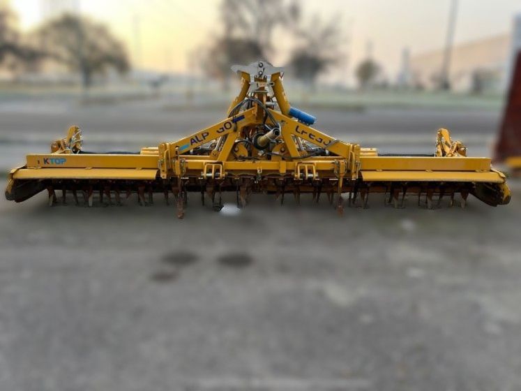 Descrizione: Erpice rotante Alpego Mod. DK TOP 600 con regolazione idraulica rulli e cardano con limitatore a bullone. Larghezza di lavoro 6 mt. Usato in ottimo stato. Anno 2023