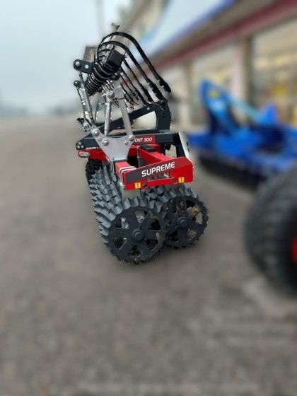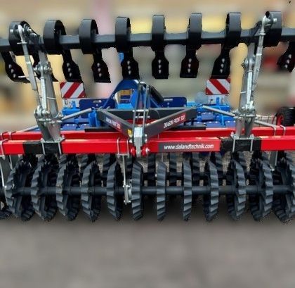 Descrizione: Rullo compattatore frontale DaLandtechnik Mod. DRAGON con lama livellatrice. Larghezza 3 mt